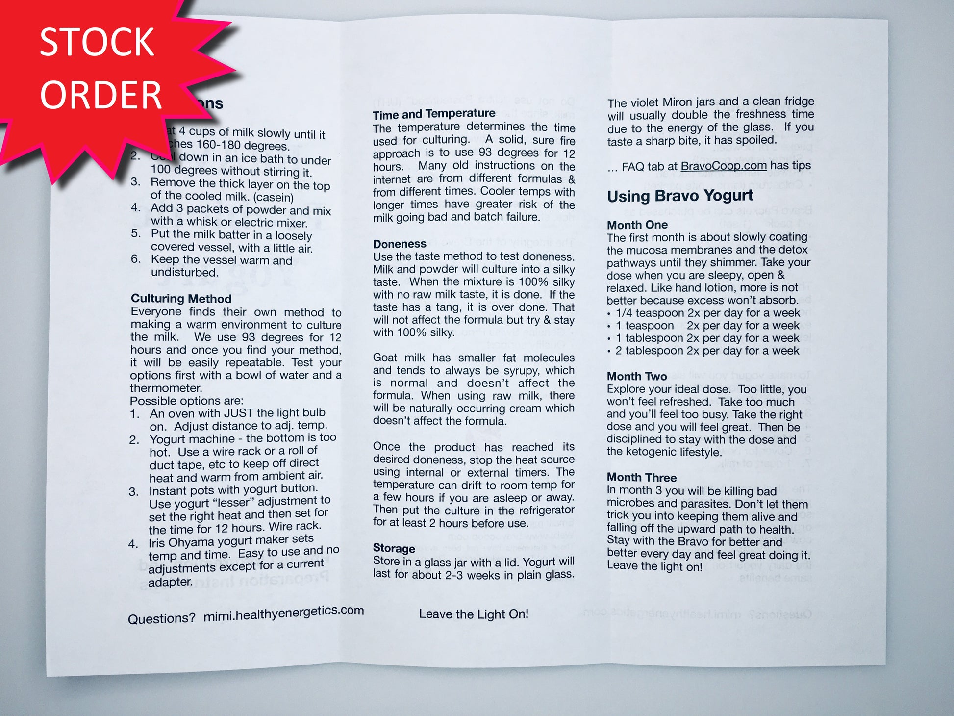 This product is being purchased through the STOCK ORDER which is the heart of Bravo Coop. The stock order has a few conditions that you need to be aware of. When you buy on the stock order, which ends on the last Sunday of each month, we ship it out on the date in the product title above. You can buy it any time during the month. There is a percentage off again if you order as a reoccurring order. When you order in this way, Bravo Coop shares the volume discount. We order together and help everyone!