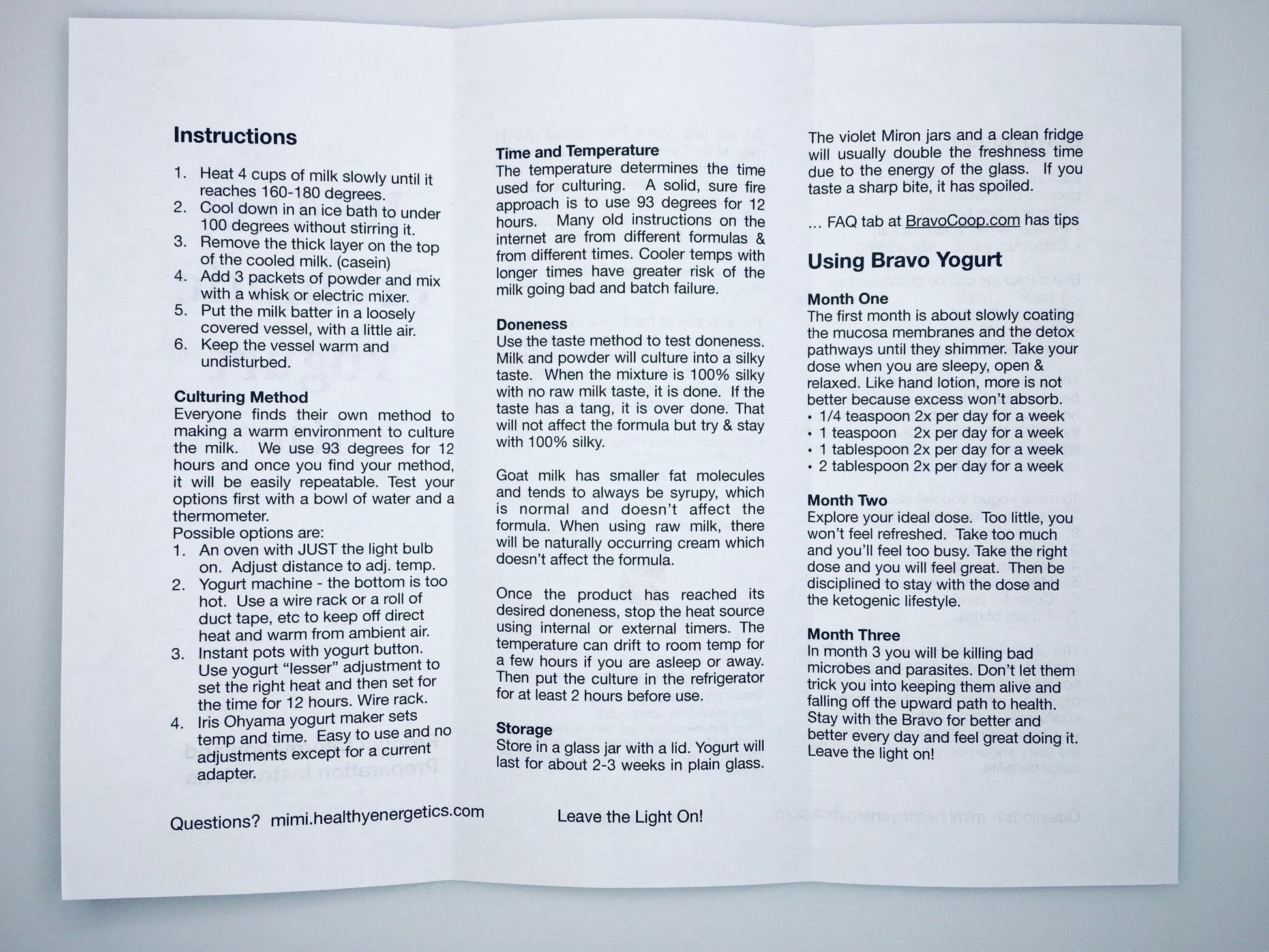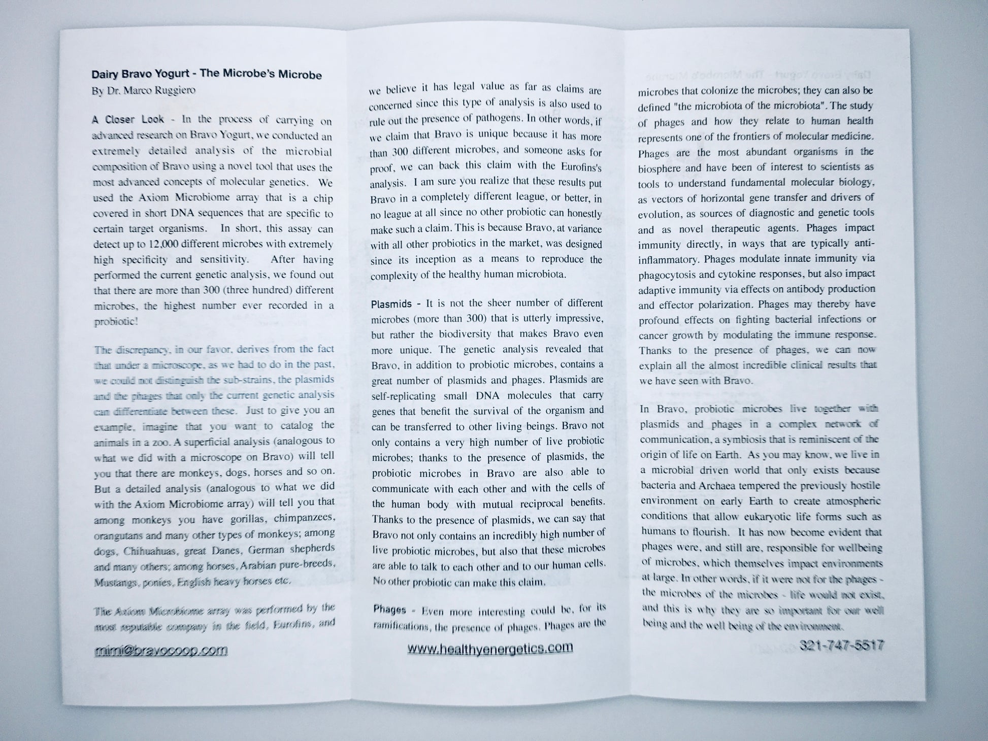 - Bravo yogurt builds a microbiome that specifically improves many functions of digestion, elimination, and nutritional processing within the body.